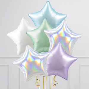 Iridescent Pastel Stars Inflated Foil Balloon Bunch