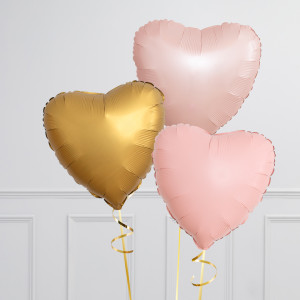 Upgrade your single 18" Matte Pink Heart balloon by adding 18" Heart balloons to make a bunch of 3, 6, 9 or 12 balloons in our soft pink & gold colourway.