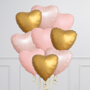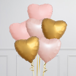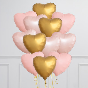 Soft Pink & Gold Hearts Inflated Foil Balloon Bunch