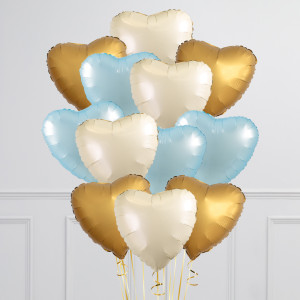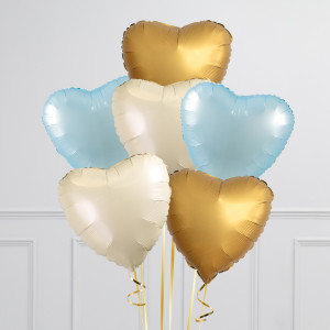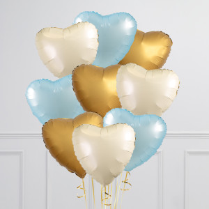 Soft Blue & Gold Hearts Inflated Foil Balloon Bunch