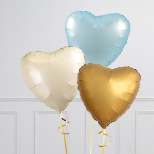 Upgrade your single 18" Pastel Blue Heart balloon by adding 18" Heart balloons to make a bunch of 3, 6, 9 or 12 balloons in our soft blue and gold colourway.
