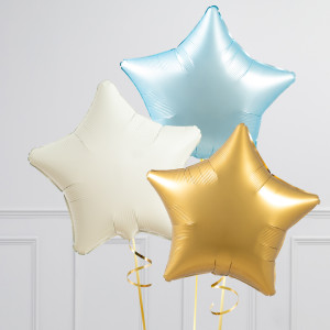 Upgrade your single 20" Pastel Blue Star balloon by adding 20" star balloons to make a bunch of 3, 6, or 9 balloons in our soft blue & gold colourway.