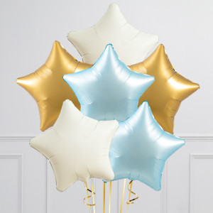 Soft Blue & Gold Stars Inflated Foil Balloon Bunch