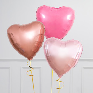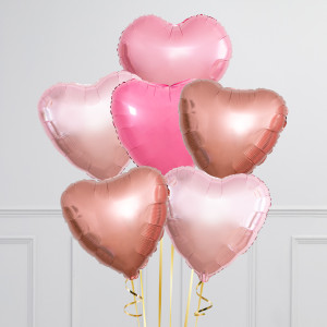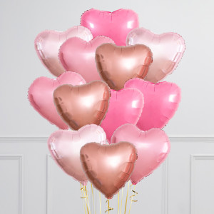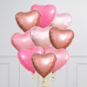 Rose Gold & Pink Hearts Inflated Foil Balloon Bunch
