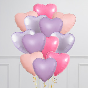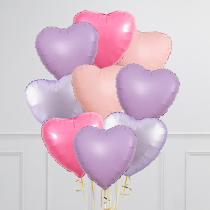 Lavender & Pink Hearts Inflated Foil Balloon Bunch