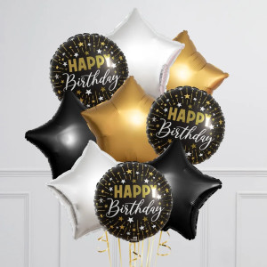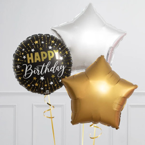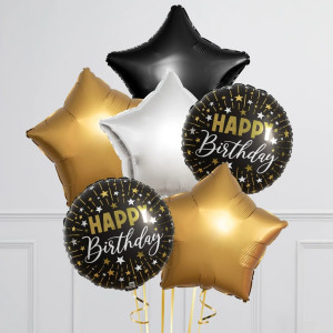 Upgrade your single 18" Happy Birthday Circle balloon by adding 20" star balloons to make a bunch of 3, 6, or 9 balloons in our Glitz & Glam colourway.