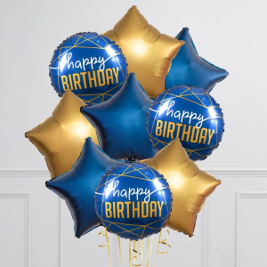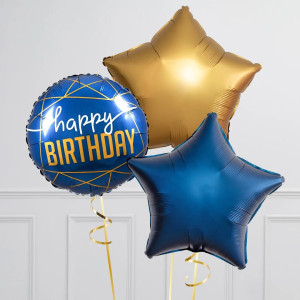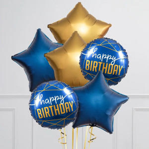 Navy & Gold Birthday Stars Inflated Foil Balloon Bunch