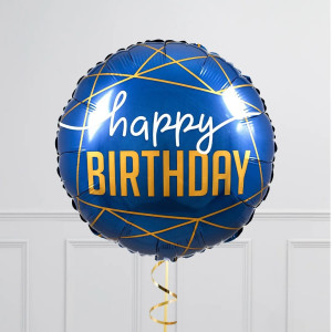 Upgrade your single 18" Happy Birthday Circle balloon by adding 20" star balloons to make a bunch of 3, 6, or 9 balloons in our Navy & Gold colourway.