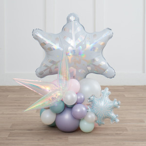 Add on a 22" Holographic Snowflake supershape balloon stack. The Snowflake balloon stack is approximately 85cm (latex 40cm tall) tall.