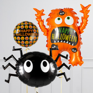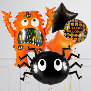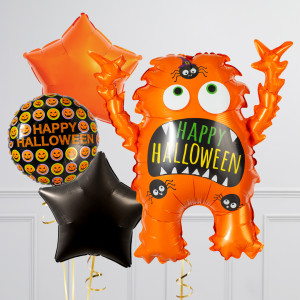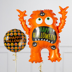 Upgrade your orange monster balloon by adding a matching 18" Happy Halloween pumpkin circle balloon, 20" star balloons, and supersize with a 39" spider balloon.
