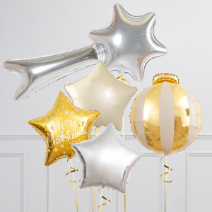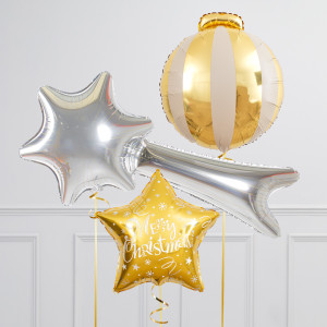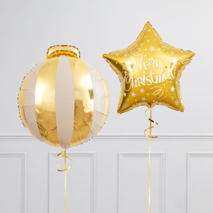 Upgrade your Christmas Bauble balloon by adding a matching 18" Gold Merry Christmas star balloon, 20" star balloons, and supersize with a 40" Silver Shooting Star balloon.