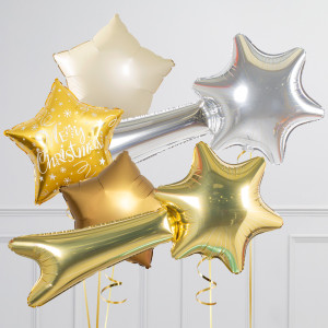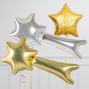 Upgrade your Shooting Star balloon by adding a matching 20" Gold Merry Christmas star balloon, 20" star balloons, and supersize with a 40" Silver Shppting Star balloon.