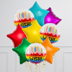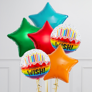 Birthday Make a Wish Stars Inflated Foil Balloon Bunch