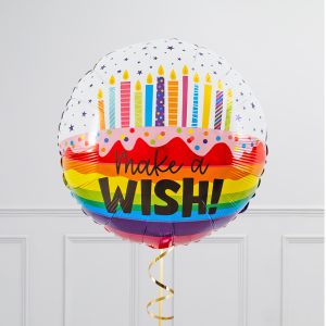 Upgrade your single 18" Make a Wish Rainbow foil circle balloon by adding 20" star balloons to make a bunch of 3, 6, or 9 balloons in our bright rainbow colourway.