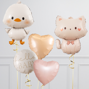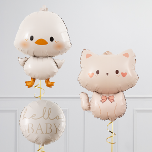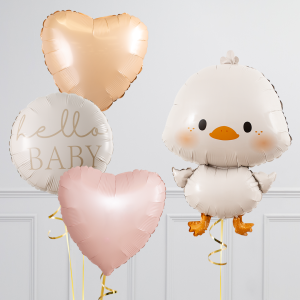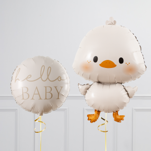 Upgrade your Duckling balloon by adding a matching 18" "Hello Baby" circle balloon, 20" Heart balloons, and supersize with a 25" Baby Kitten balloon.