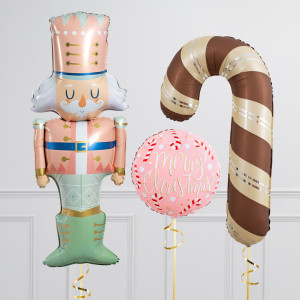 Upgrade your Candy Cane balloon by adding a matching 18" Pink Candy Cane cicle balloon, 20" star balloons, and supersize with a 42" Pastel Nutcracker balloon.