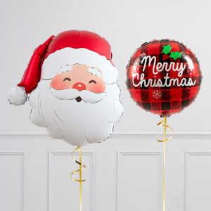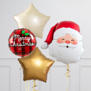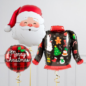 Upgrade your Santa balloon by adding a matching 18" Plaid Merry Christmas circle balloon, 20" star balloons, and supersize with a 31" Classic Christmas Jumper balloon.