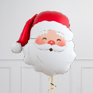 A helium-inflated 23" Santa Clause balloon on ribbon and a weight