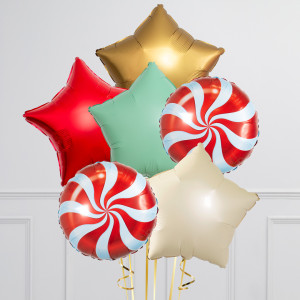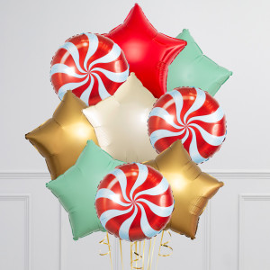 Classic Christmas Swirl Stars Inflated Foil Balloon Bunch