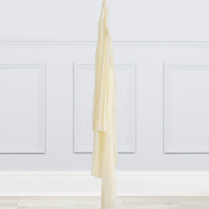 A helium-inflated 20" White Gold orb balloon on a tail and a weight in your design of choice.