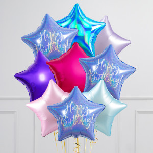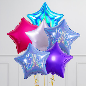 Happy Birthday K-Pop Themed Stars Inflated Foil Balloon Bunch