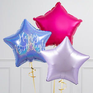 Upgrade your single 20" Happy Birthday Star balloon by adding 20" star balloons to make a bunch of 3, 6, or 9 balloons in our K-Pop Demon Hunter Inspiried colourway.