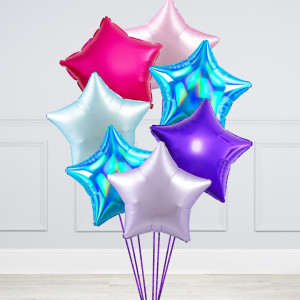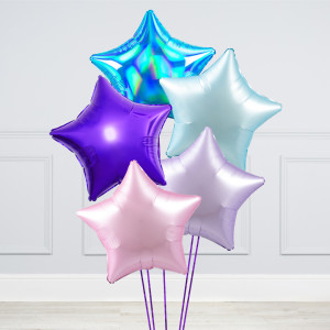 Make it extra special by turing your confetti filled balloon into a bunch! Add two, five, or seven 20" star foil balloons to create your customised bunch. Once you add to basket, you can add number balloons and 15 Mini Balloons, perfect for scattering!