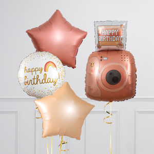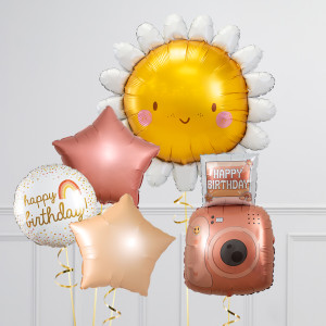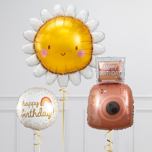 Upgrade your Polaroid Camera balloon by adding a matching 18" Boho Birthday Circle balloon, 20" Star balloons, and supersize with a 27.5" Large Flower balloon.