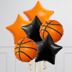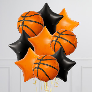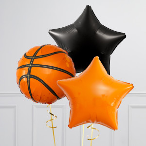 Upgrade your single 18" Basketball circle balloon by adding 20" star balloons to make a bunch of 3, 6, or 9 balloons in our black & orange colourway.