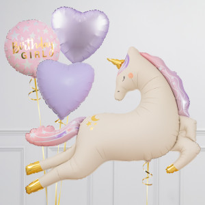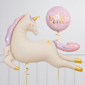 Upgrade your Unicorn Number balloon by adding a matching 18" Pink Birthday Girl balloon, 18" heart balloons, and supersize with a 44" Unicorn balloon.