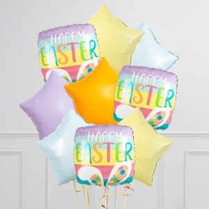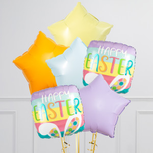 Upgrade your single 20" Happy Easter Bunny Ears square balloon by adding 20" star balloons to make a bunch of 3, 6, or 9 balloons in pastel colours.