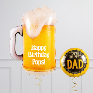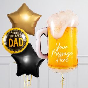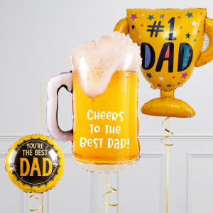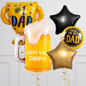 Choose your bunch size - starting from a single beer balloon, up to a set of five that includes a matching 18" "You're the Best Dad" circle balloon, 20" star balloons, and a 27" Number 1 Dad Trophy balloon.