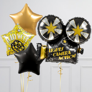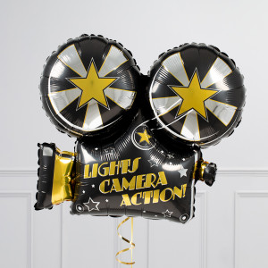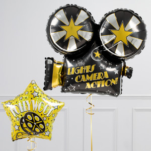 A helium Hollywood Movie balloon-in-a-box arriving inflated via the post - a perfect way to shout Lights, Camera, Action to the birthday superstar!