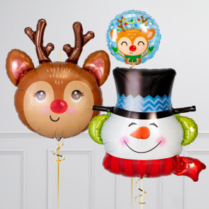 Upgrade your Christmas Jumper balloon by adding a matching 18" "Merry Merry Merry Christmas" circle balloon, 20" star balloons, and supersize with a 35" Snowman Head.