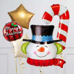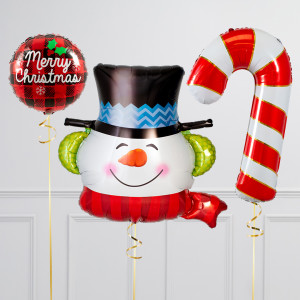 Upgrade your Christmas Jumper balloon by adding a matching 18" "Merry christmas" tartan circle balloon, 20" star balloons, and supersize with a 32" Red & White Candy Cane.