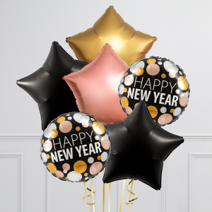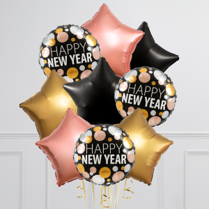 Our Rose Gold New Year's Eve helium balloons are available in multiple bunch sizes to suit your celebrations.