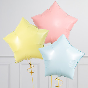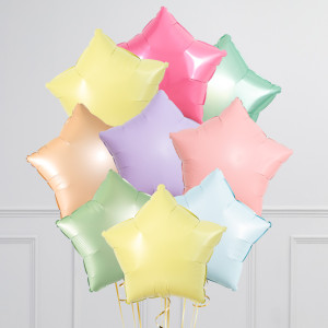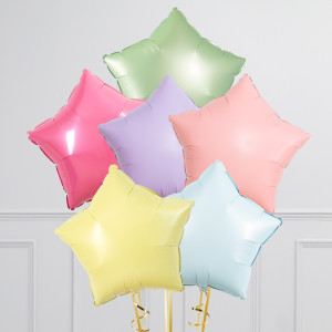 Upgrade your trio of stars balloon by adding more 20" star balloons to make a bunch of 3, 6, or 9 balloons in our Pastel Rainbow colourway.