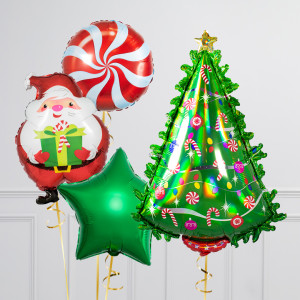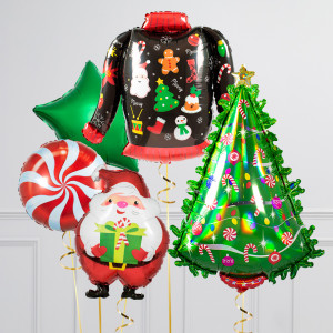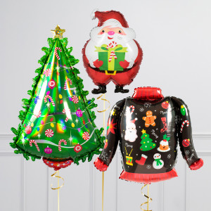 Upgrade your Christmas Tree with Decorations balloon by adding a matching 20" little Santa balloon, 20" star balloons, and supersize with a 30" Classic Christmas Jumper balloon.