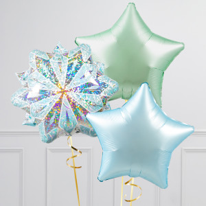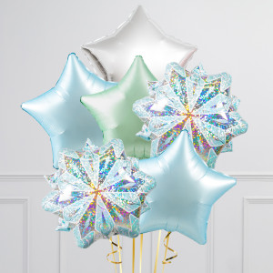 Upgrade your single 18" snowflake balloon by adding 20" star balloons to make a bunch of 3, 6, or 9 balloons in our Arctic Grotto colourway.
