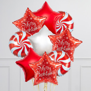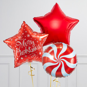 Upgrade your single 20" Red Merry Christmas Star balloon by adding 20" red & white star balloons and 18" Red Candy Swirl circle balloons to make a bunch of 3, 6, or 9.