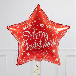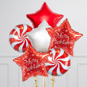 Merry Christmas Red Stars Inflated Foil Balloon Bunch