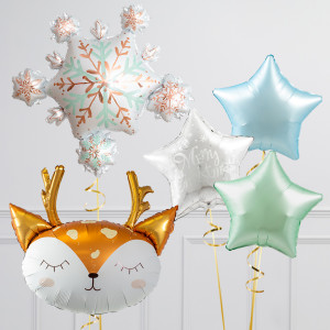 Upgrade your adorbale reindeer balloon by adding a matching 18" Merry Christmas star balloon, 20" star balloons, and supersize with a 32" snowflake balloon.