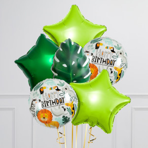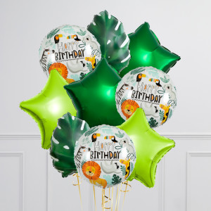 Tropical Jungle Happy Birthday Inflated Foil Balloon Bunch