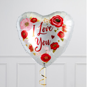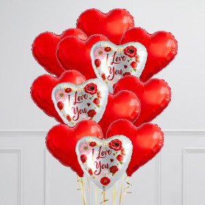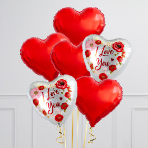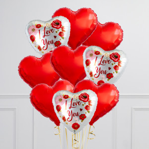I Love You Flowers Red Hearts Inflated Foil Balloon Bunch