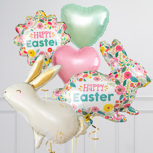 Upgrade your Easter Bunny balloon by adding a matching 20" Happy Easter Flower balloon, 18" heart balloons, and supersize with a 28" Cream Bunny Rabbit balloon.