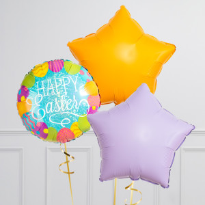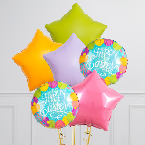 Upgrade your single 18" Happy Easter Eggs circle balloon by adding 20" star balloons to make a bunch of 3, 6, or 9 balloons in a rainbow colourway.
