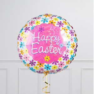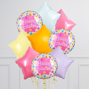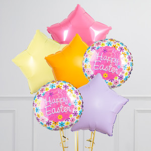 Floral Happy Easter Stars Inflated Foil Balloon Bunch