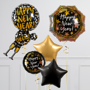 This helium-filled balloon package is the perfect Happy New Year's gift to have delivered to their door for their New Year's Eve celebrations. Add a gift tag to your Gold Sparkle New Year's Eve balloons and select your delivery date at the checkout.