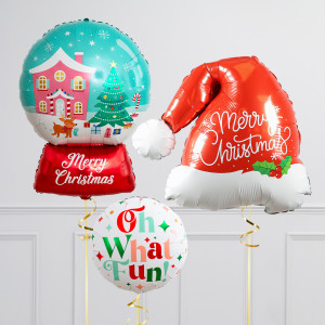 Upgrade your Bauble balloon by adding a matching 18" Oh What Fun Circle balloon, 20" Star balloons, and supersize with a 27" Nostalgic Snowglobe balloon.