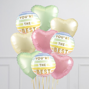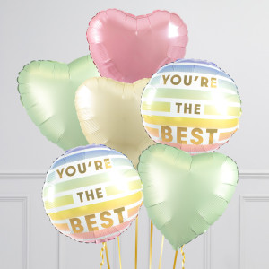 Featuring a mix of pastel heart balloons, our You're The Best heart balloon bunch will be the perfect addition to your celebrations.